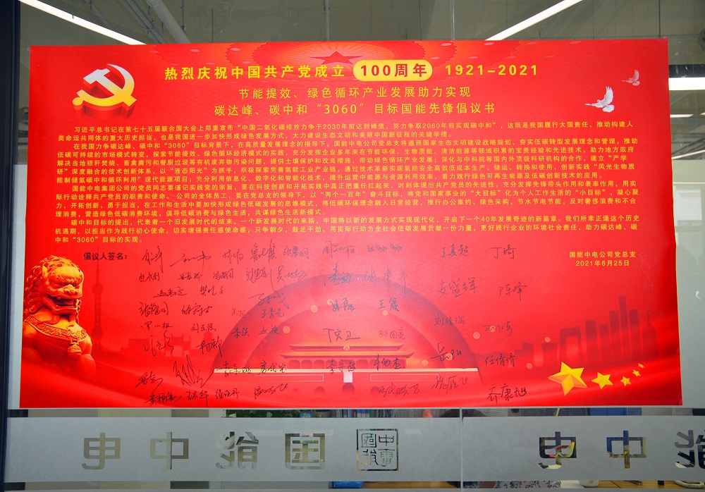 這是國能中電全體黨員及廣大員工對“3060” “碳中和”國家戰略的最佳解讀,是傳承紅色基因的莊嚴承諾,是踐行綠色使命的科學行動。在公司未來的發展進程中,我們將把黨性融入骨血,用先進的環保設備控碳減碳,用高科技的環保技術守護綠水青山。